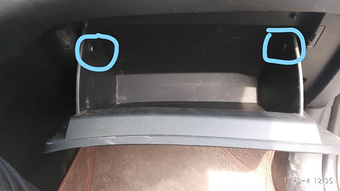 清理完手套箱之后,就能看到左右各一个,对了,就是用硬币来打开它的