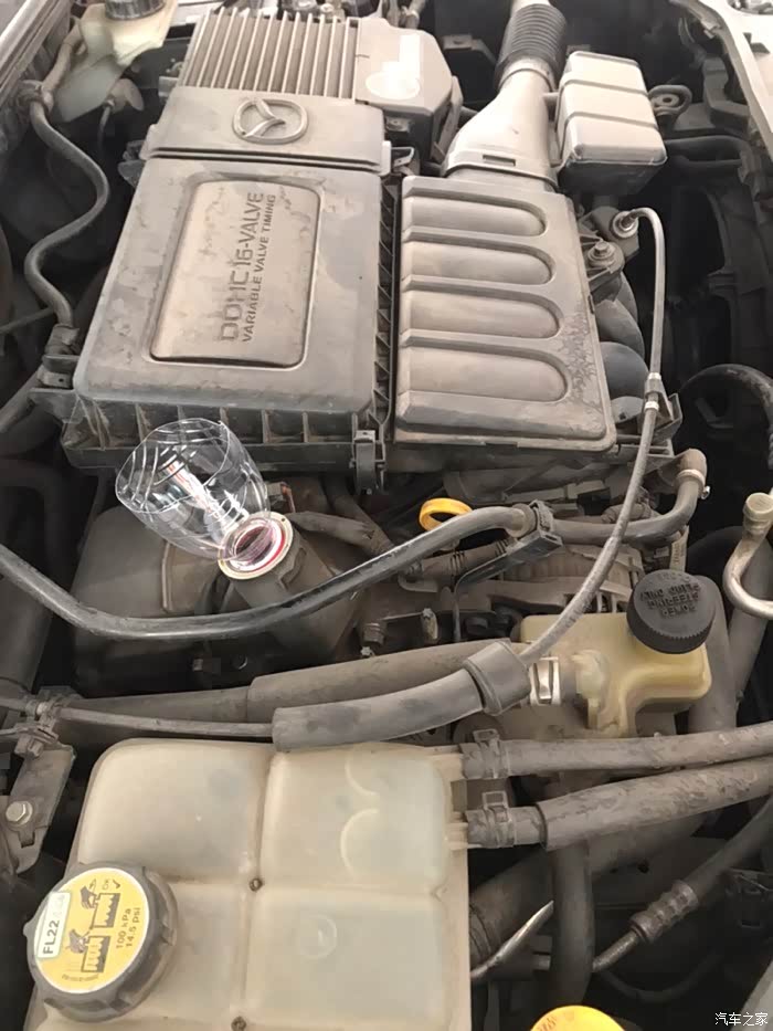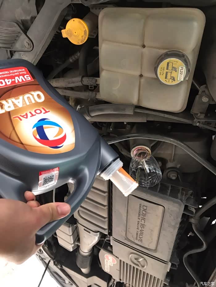 机油加注口。原产地农夫山泉瓶伺候
