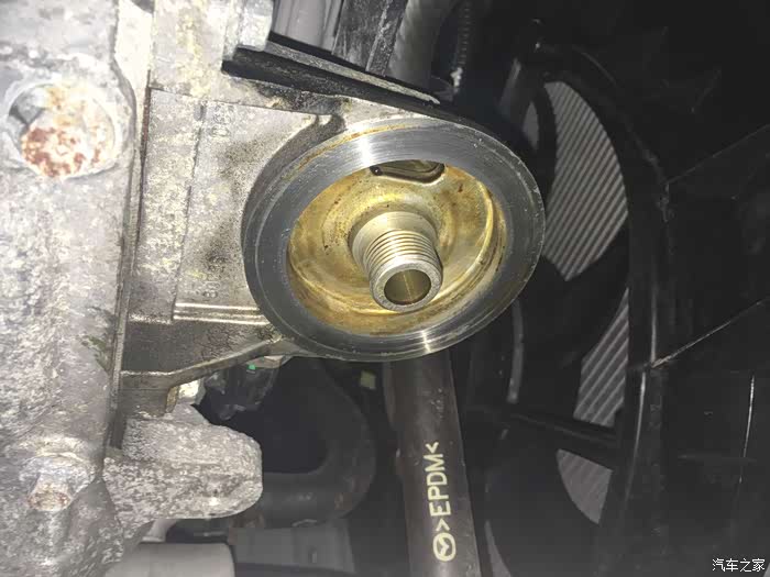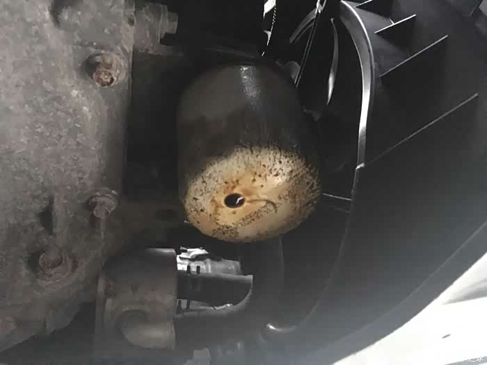 卸机滤,上次机滤密封圈坏了,或者是因为安装时候没抹油,导致密封圈拧变形了漏油。