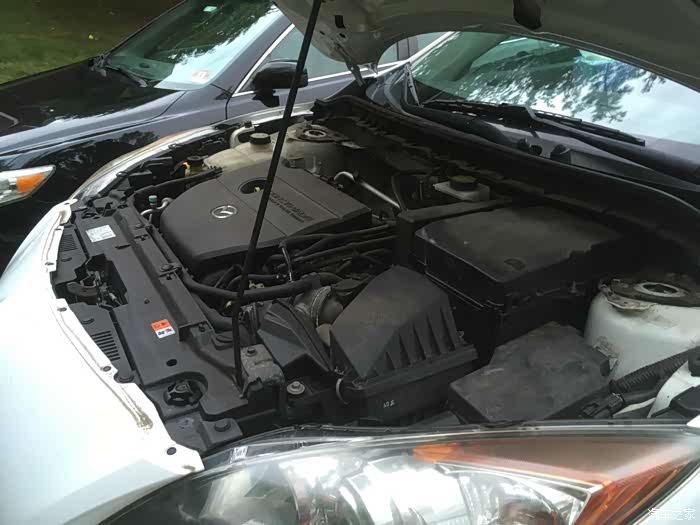 帖子主角仍然是前面那辆2011年美版马自达3。这辆车快5万英里(8万公里)了。已经给这辆车换过刹车盘片和电池。看了看没什么其他方面的问题。车主说已经一年多没换油了,而且上一锅油还是路边店的矿物油。真是糟蹋车了,看了看油尺,多亏这车不烧机油,液面还正常,甭耽误,赶紧换吧。