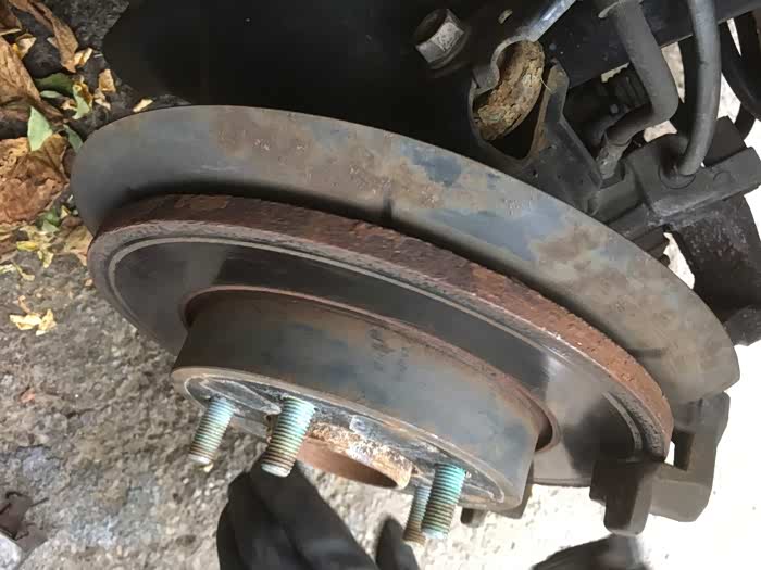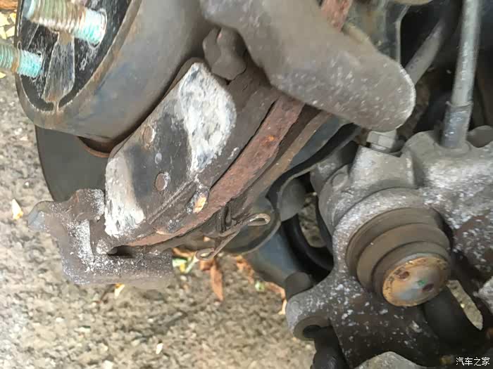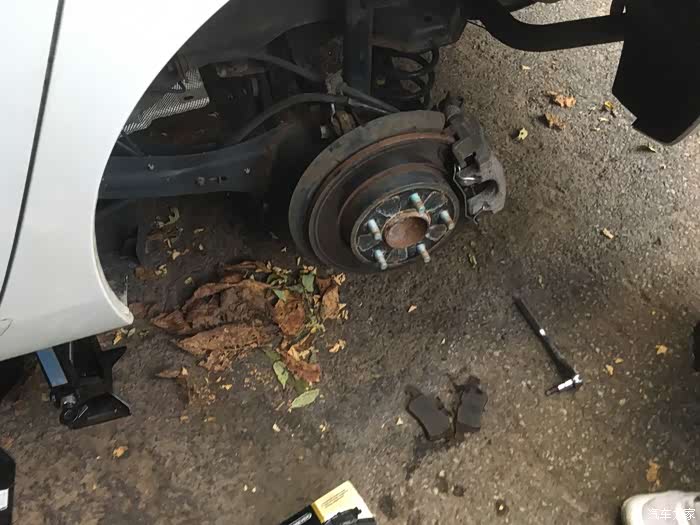 前面说到这辆美版马自达3星骋前后刹车片都不行了,前刹因为刹车片磨光了,导致磨坏了刹车盘,所以需要换刹车盘和片。后刹车状态还好,刹车片还有,所以这次就帮朋友把刹车片换掉就行。本以为单换刹车片,应该很轻松,没想到工具不合适又出了岔子。