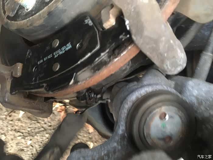外面还挂上了跟弹簧,防止刹车片抖动的。