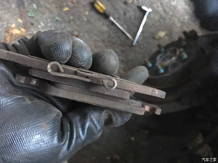 看看刹车片磨得怎么样了。
