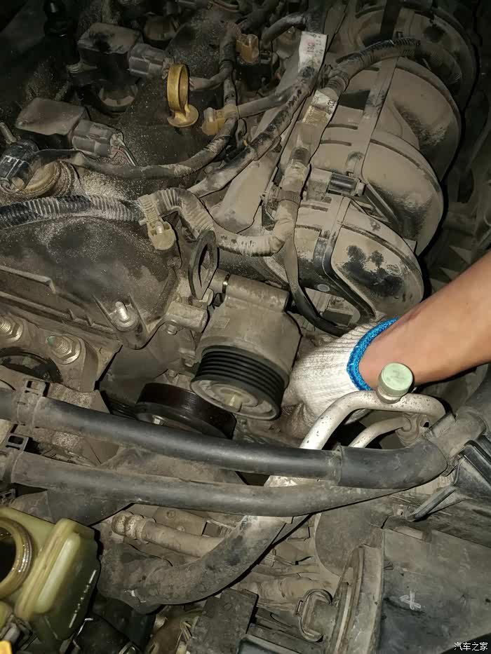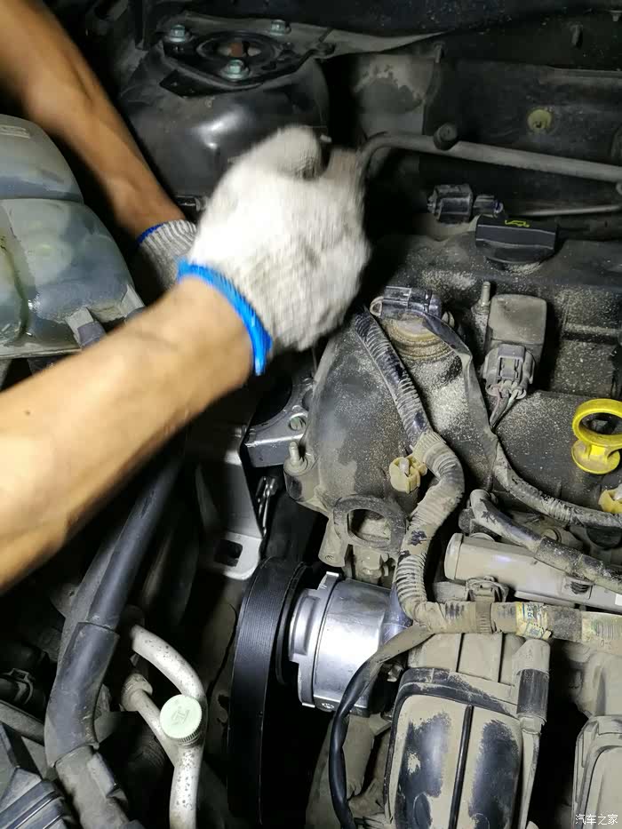然后开始换皮带,上下两根,拆掉旧的张紧轮