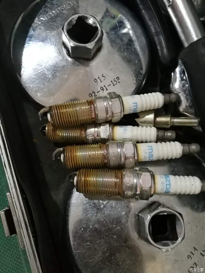 换下来的火花塞,应该是原厂配套的吧,看起来感觉应该是原车主中间换过。反正这次拿了新的火花塞,NGK的,直接换掉吧,不去纠结原来的还能用多久