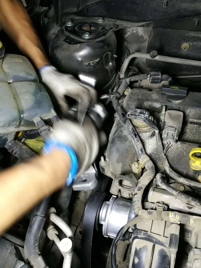 再接着换发动机右机脚。车买回来就一直看论坛。发现好像马自达这机脚是个通病,怠速抖动比较厉害。也咨询了版主,答复需要更换机脚来解决问题,故这次直接一并了。