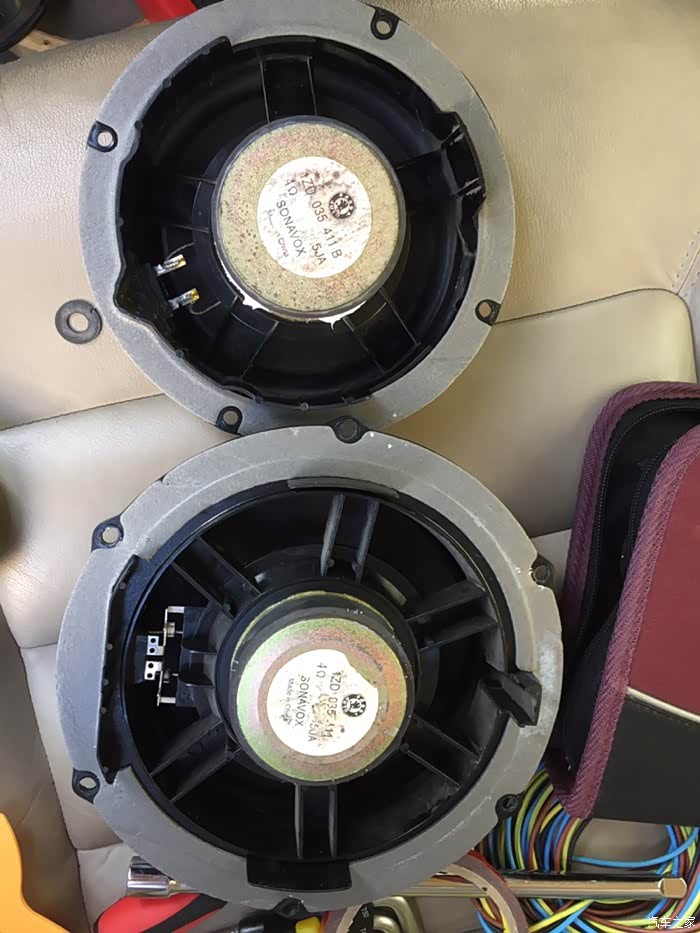 铆钉也是问钣金师傅要的,5mm的。目前相当于中音喇叭回归原厂,高音部分以前用ab胶粘的,拆的话老费劲了,故延用分频器带高音。建议:改装过喇叭的同学改装时没加防水罩的,建议检查一下,木质的垫圈很容易烂掉。喇叭进水容易短路或开路。总结:车子都是折腾坏的,没需求的尽量保持原厂。