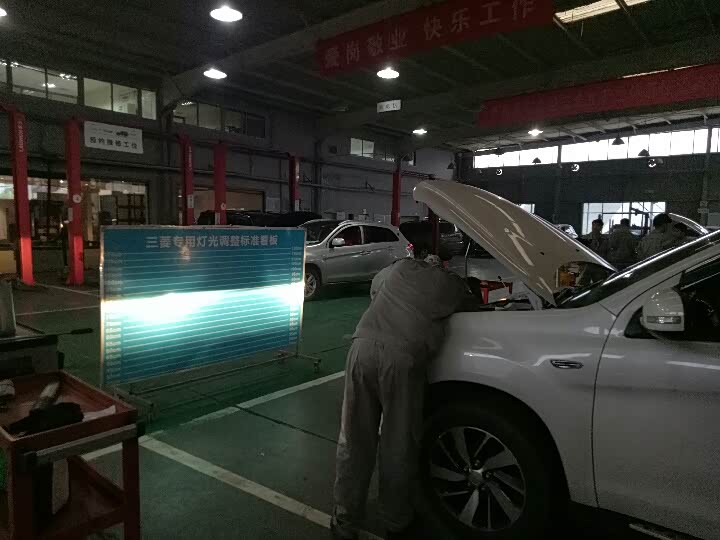 跟师傅反应晚上行车灯光距离太近看不到远处,师傅耐心的对灯光进行调整。近光灯不能调太高,不然晚上会车时会刺激对方驾驶员视线。