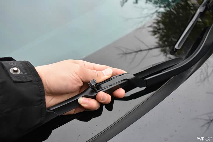 要把雨刮从雨刮臂上取出,首先要把雨刮的限位卡用食指扣起。