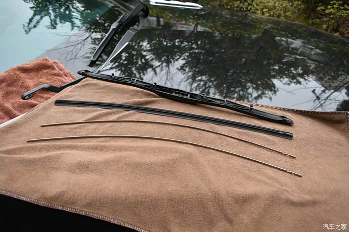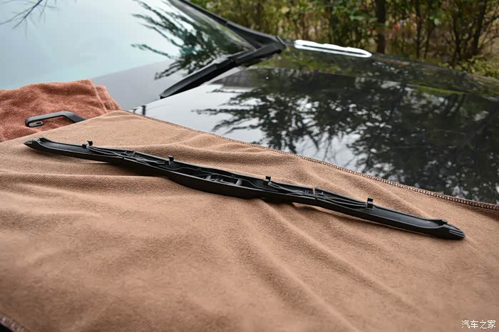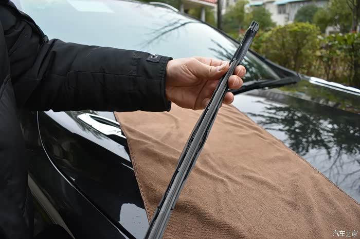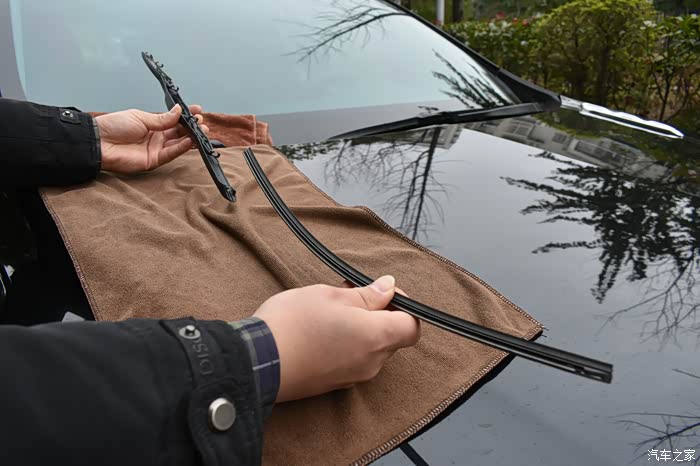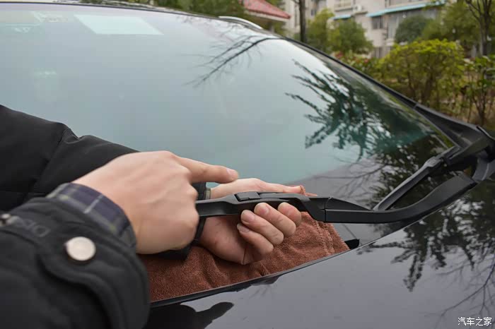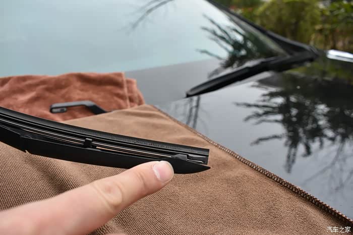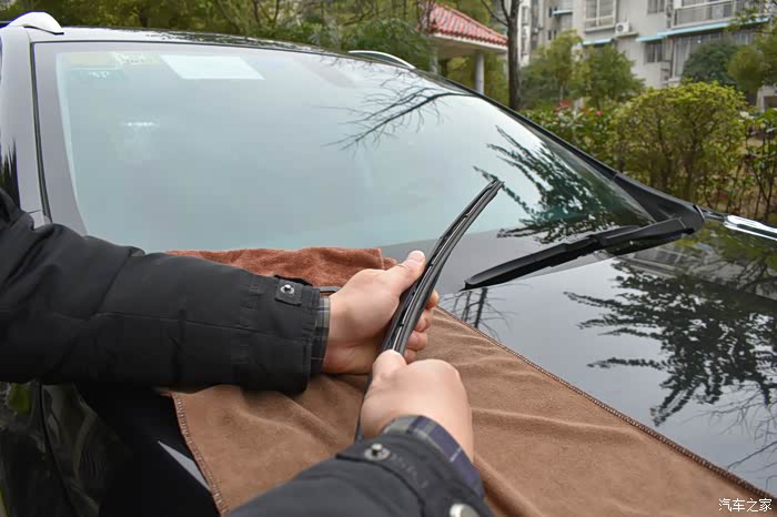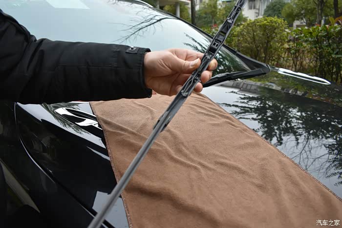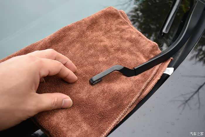 注意要在对应雨刮臂U型卡口端的前档玻璃处放块毛巾,以免操作不小心,雨刮臂的金属端子打在玻璃上,造成不必要的损失。