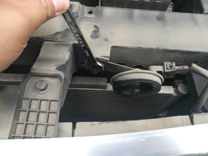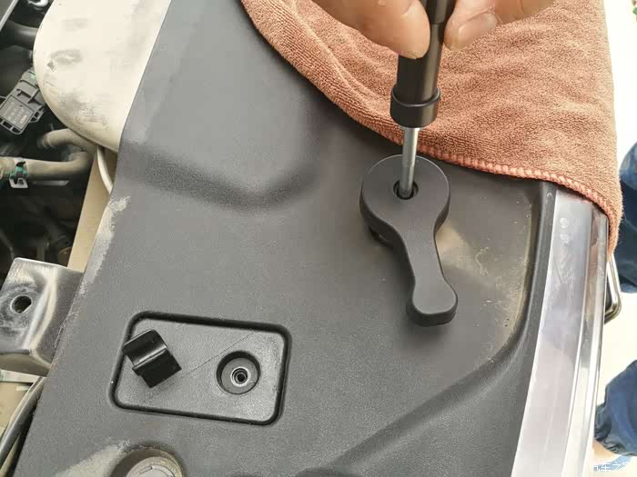 电瓶和玻璃水这两个地方有螺丝拧下来
