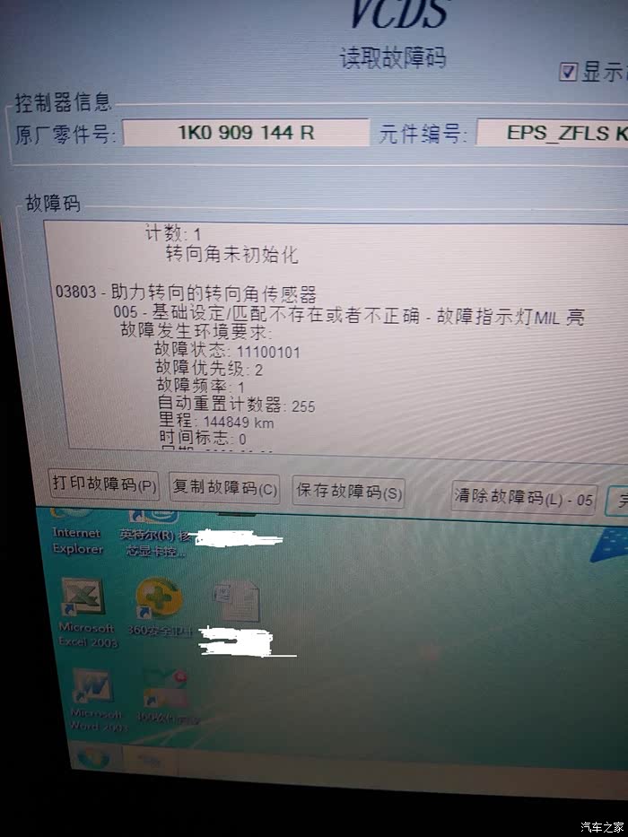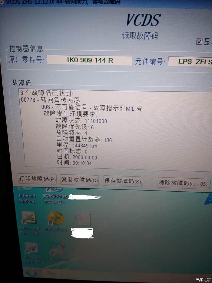 下面说下方向机吧,二手车不可避免的就是各种维修,刚买回来的时候就发现了方向机的问题,遇到不平整的坑洼地,车速稍微快一点就出现方向盘故障灯亮(黄色),我也在网上找了很久出现的原因,有说是电瓶接触不好的等等,也都逐一的排查了,都不是,用5053诊断故障码是00573-转向扭矩传感器(G269),008-不可靠信号,当时也没有太在意,反正亮了也能开,终于在两个月前,当时天气很热,过一个很小的坑的时候,车内传来了三声嘀嘀嘀声,突然方向助力消失,我想完蛋了,但还抱有一丝幻想,重新启动发动机,当时还真恢复了助力,但没走几米就又报警了,方向盘灯又变成了红色,之后又断的电瓶电,也都于事无补,当时在外面,也没有检测工具,还有没有助力但是可以打动方向盘,就是用的力气要非常的大,不想没有助力的,单存靠机械传动,我这没有了助力还增加了助力电机的阻力,是沉上加沉,掉个头吃奶的劲都要使上了,回家之后用5053诊断还是转向扭矩传感器故障,清除故障码后还是不好用,不能回复助力,这下彻底完蛋了,又是一笔不小的开支呀