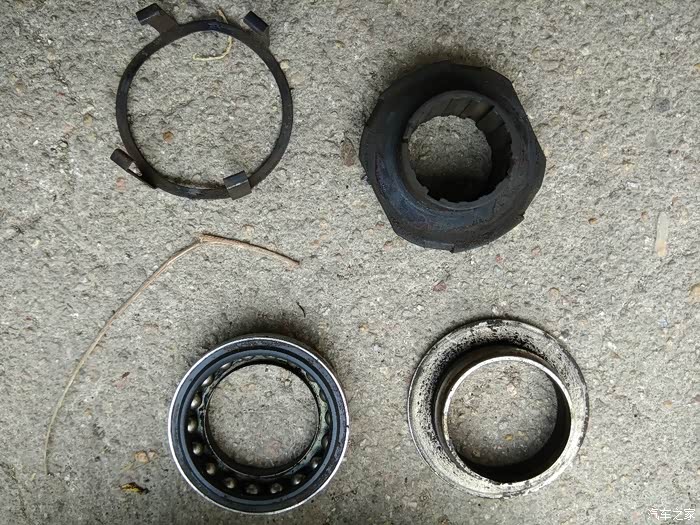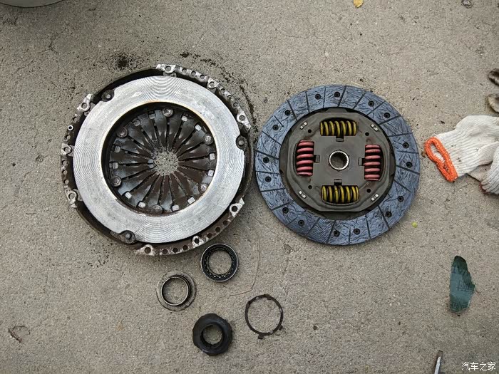 这是换下的离合器三件套,磨损情况还不错,就是分离轴承不行了