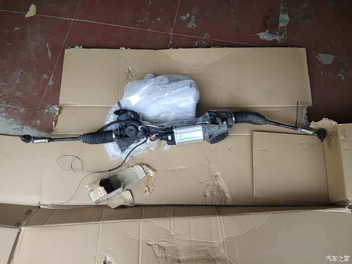 本身就是二手车,车龄将近10年了,换新的太贵了,只好研究拆车件,因本车是第一批明锐,用的是大众的第二代方向机(大电机,在网上有相关的介绍),在09年以后,大众就不再提供二代方向机的配件,新件只能换三代方向机(小电机),在更换三代方向机的同时还要更换线束,因二代和三代走线不同(二代和三代在使用上也是有很大的区别的,二代异响要比三代的严重,打方向也不够线性,有突兀的感觉,结构上二代比三代复杂,我看到过一个车主的方向机电机烧掉的,因为密封圈进水造成的,三代结构简化了许多,出现这样的问题几率也会下降不少),然后就是去万能的某宝家找货源,刚开始想新件能不能有便宜点的,问了好多家都不便宜都得4000+以上(单独方向机不带拉杆和球头的,有拉杆和球头的更贵),想买个二代的,都说没有货,只能更换三代的,看来是没希望了,综合考虑还是搞个拆车件吧,然后又是一顿淘,找了几家二代和三代拆车都有货,心想还是搞个三代的,操控会改善不少,但是问提供不提供技术的时候,他们说他们也搞不了,之前还有个二代改三代的没搞好,又把货给退了回去,这下犯难了,之前也在网络上找了不少的资料,都说的比较简短,我也不是专业修车的,有些程序上操作没有做过也不知道怎么去搞,后来心想死马当活马医吧,反正是自己的车,就是拆着玩了,我就又换了一家,这家说提供技术支持,这回好了有技术支持了就不怕了,就定了个三代拆车件,付款等收货,三四天后货到了,包装比较简单一个纸盒子,方向机电机部位被包了几圈的减震塑料。