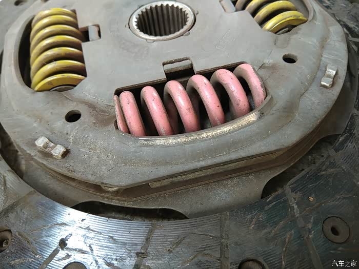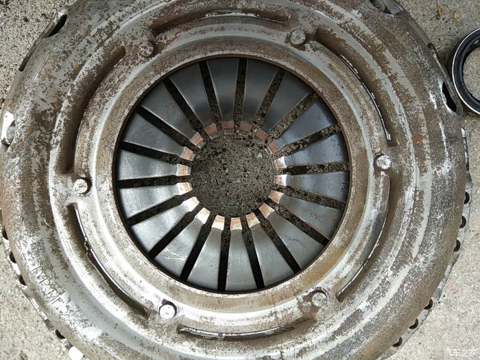 这个是离合器片上的摩擦痕迹,压板(上图)和离合器片这两个位置相互摩擦,造成有的时候挂一档有哐的一声,一开始我还以为是变速箱出了问题,拆开后发现是这两个位置相互碰撞早成的声响,换后就没有这个声音