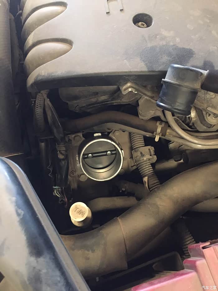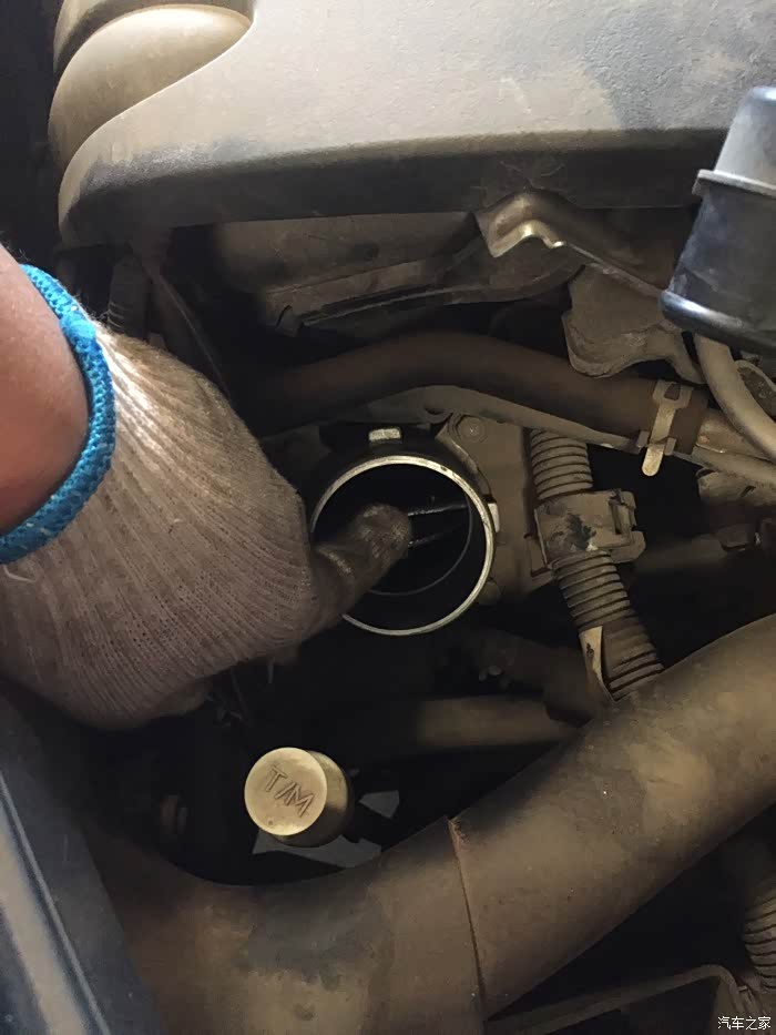 这个圆圆的东西就是节气门,店里小哥哥说很脏,我说还好吧,然后他就用手在里面抹一下,全是黑油灰