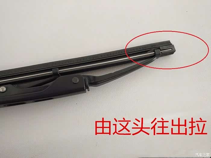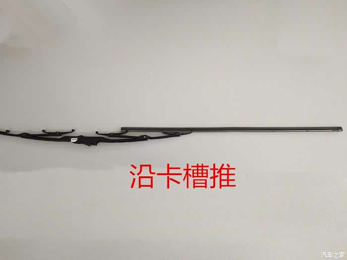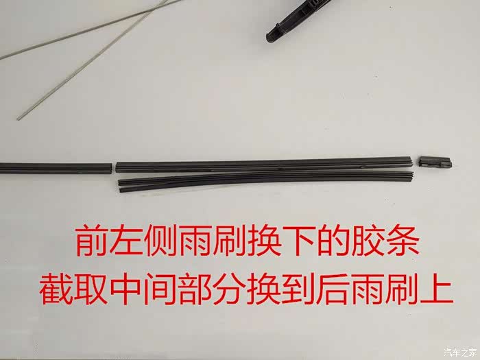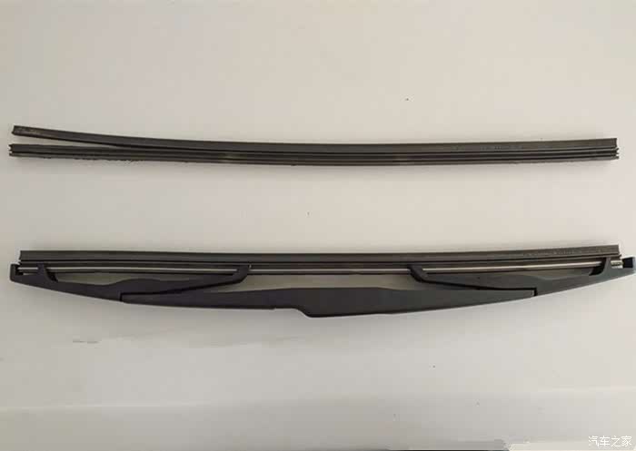 装好的左侧雨刷,换下的左侧雨刷胶条装到后雨刷上