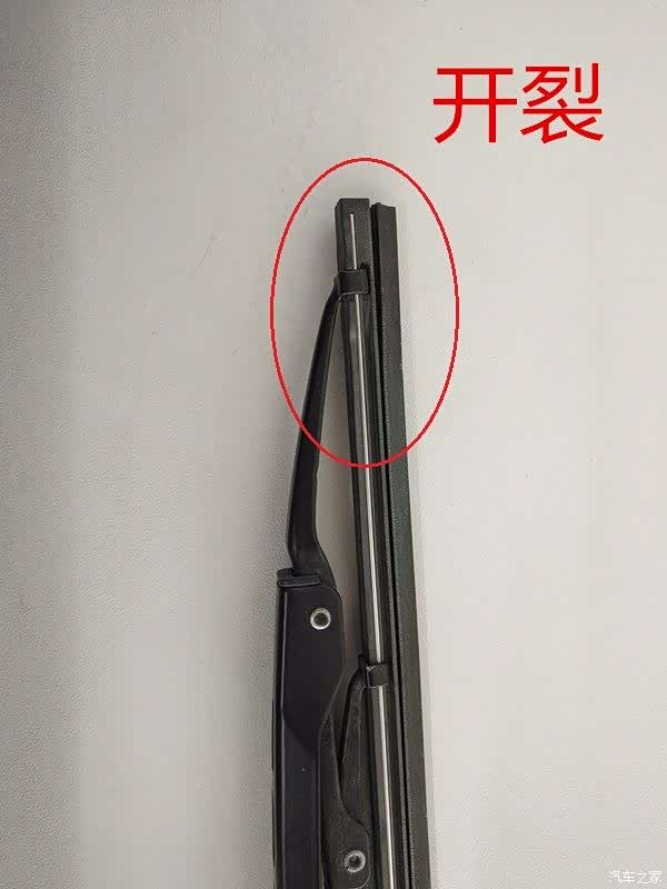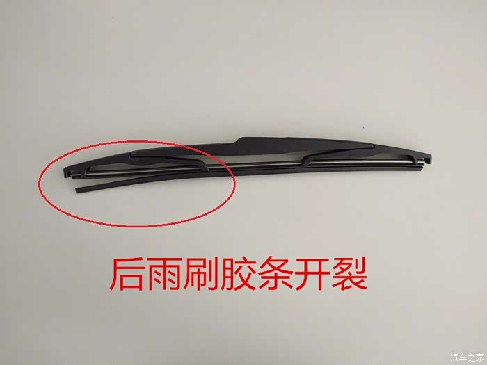 拆下的原车后雨刷,胶条一端开裂,裂的还挺长
