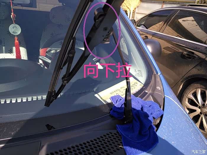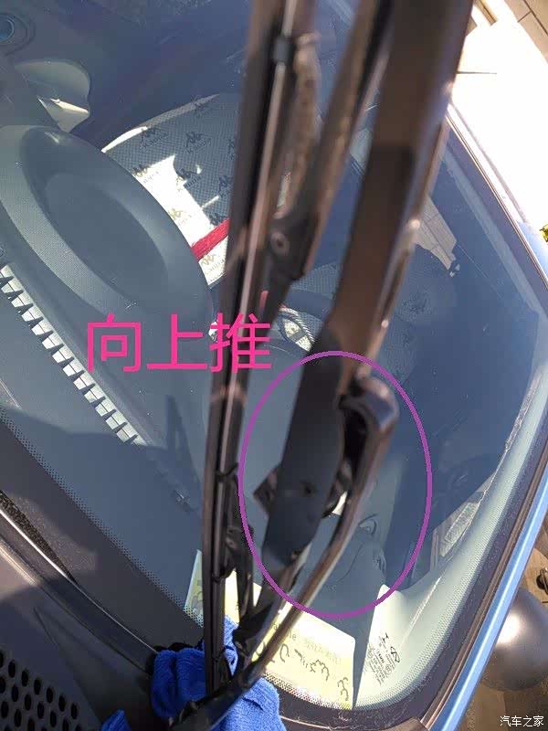先从车上拆下雨刷,立起雨刷臂,按住向上推,就可以下来