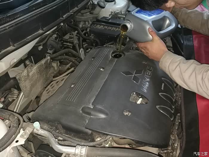 首先说说保养。广汽三菱一直倡导的是5000公里或者三个月做一次保养。刚买车的第一年,4S店送2.5次保养,那0.5次的意思是只送机油和机油滤清器,我还要自己出工时费。反正不要自己花多少钱,所以真的是很听话的坚持这个原则做了一年的保养。