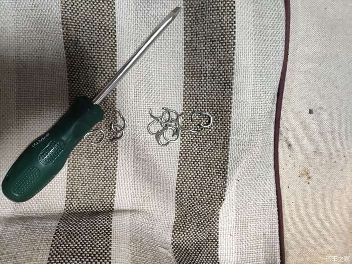 座椅织物套都是用这种塑料卡扣固定的,很好拆,质量也还不错,没有拆断。