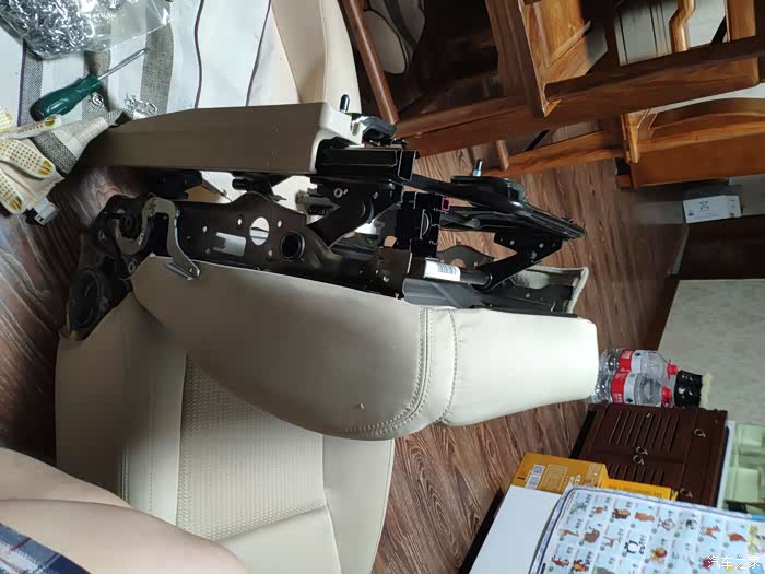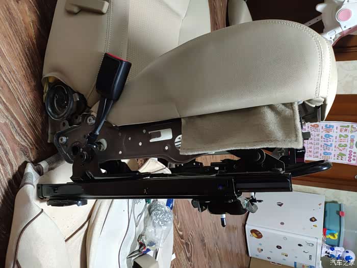 安装好塑料包围。靠背调节这个盖板下面是有个螺丝的,需要拆下,10mm规格。完工
