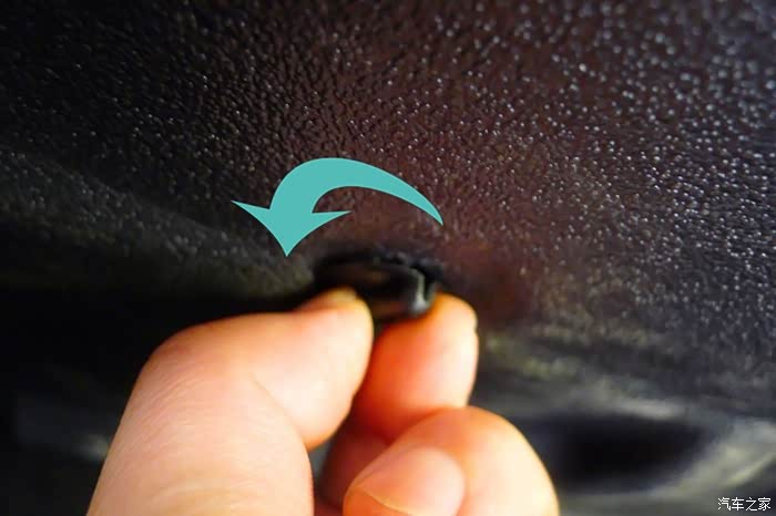9. 拆除后, 你就可以看到空滤固定卡扣了,抓住上图所示的把手, 用力往右拉动。