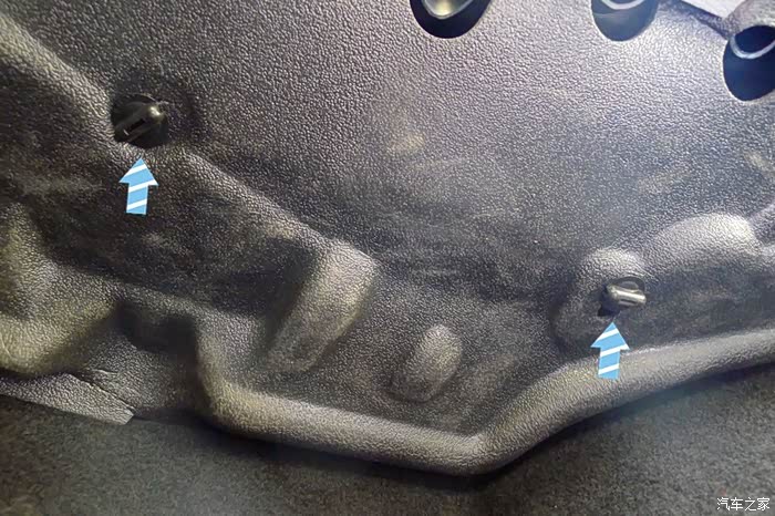 2.手套箱的下面是一个泡沫隔垫, 用来隐藏空滤, 拆除这个隔垫需要松掉上图箭头所指位置的两个螺丝。