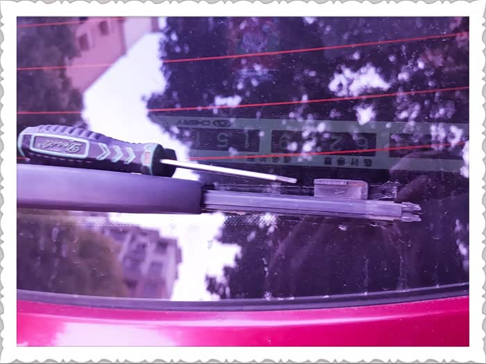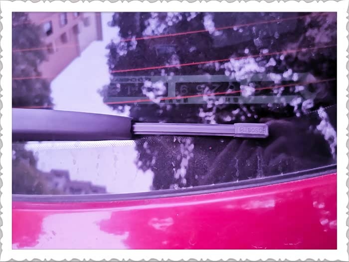 前段时间,总感觉后雨刮器刮不干净,还有响声,我想时间久了,就没在意,偶尔一洗车,看到原来雨刮器胶条坏掉了,三年多了,用的可真久了!