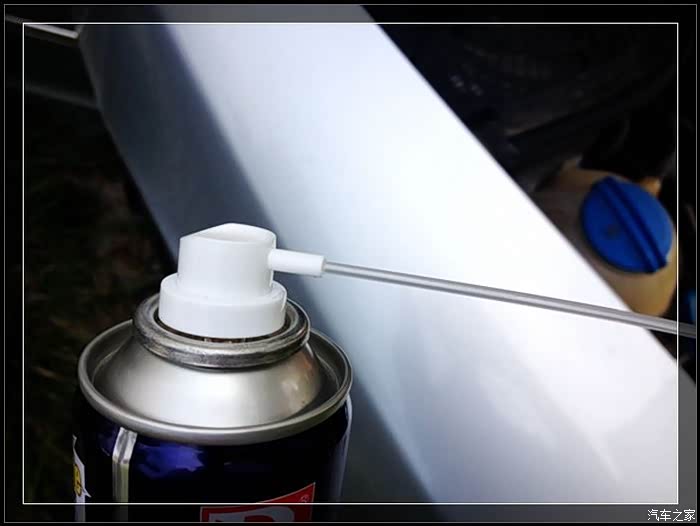 然后启动发动机,在怠速状态下使用免拆电子节气门清洗剂喷洒2~3秒,如果较脏可以重复以上步骤。
