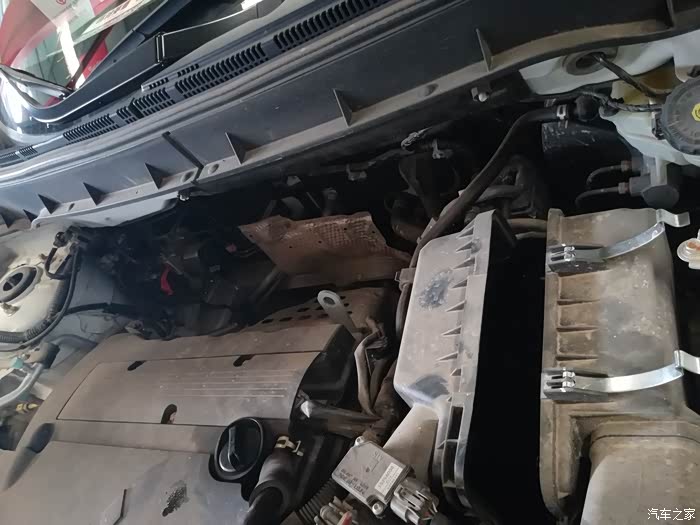 发动机仓自己没清洗过,灰尘比较多。还好没有像论坛里车友发的图片那样,有老鼠进来的痕迹~