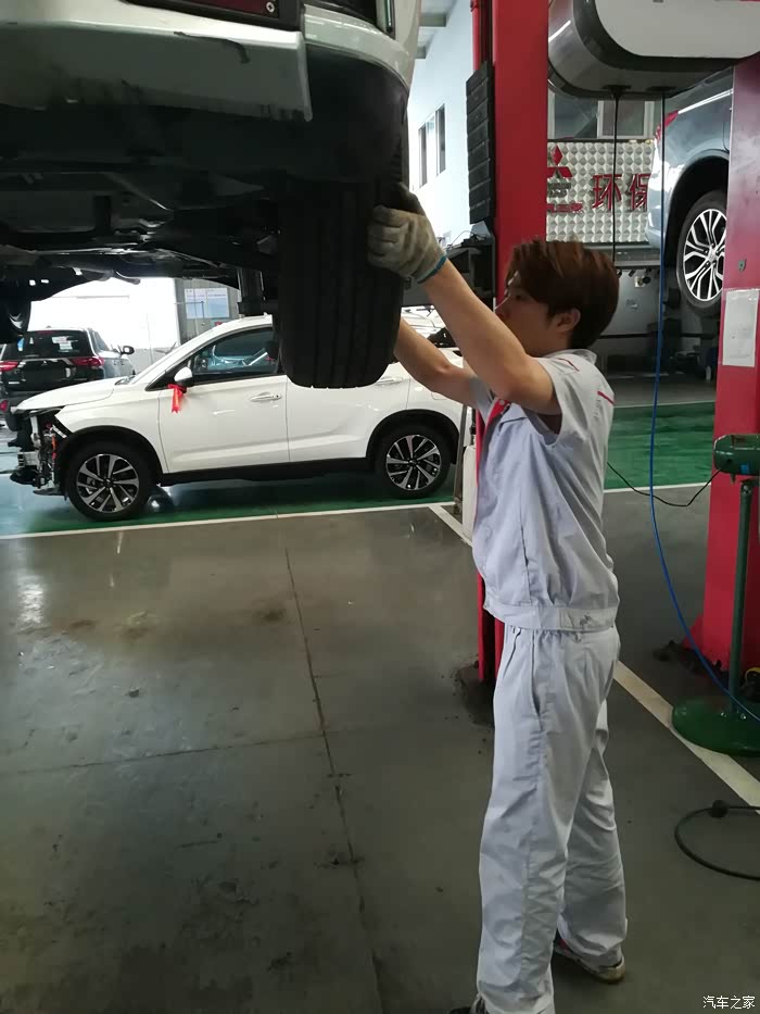 加完机油,又把小炫升起来了,检查底盘以及轮胎,这就是我所说工作人员认真之处了,前几次都没看见工作人员这么细心的给我检查小炫底盘。