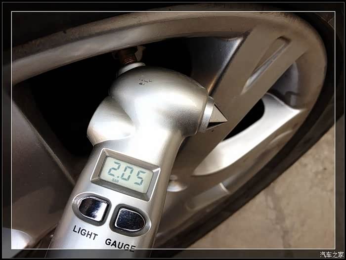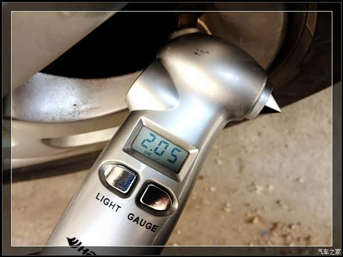 下面进行轮胎的胎压检测,左前轮胎压2.05,有些低哦。