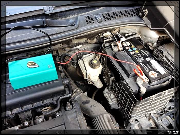 冬季电瓶容易亏电,使用充电器给小明的电瓶冲满电,另外使用车载充气泵也耗电大。