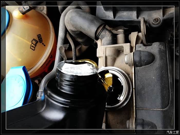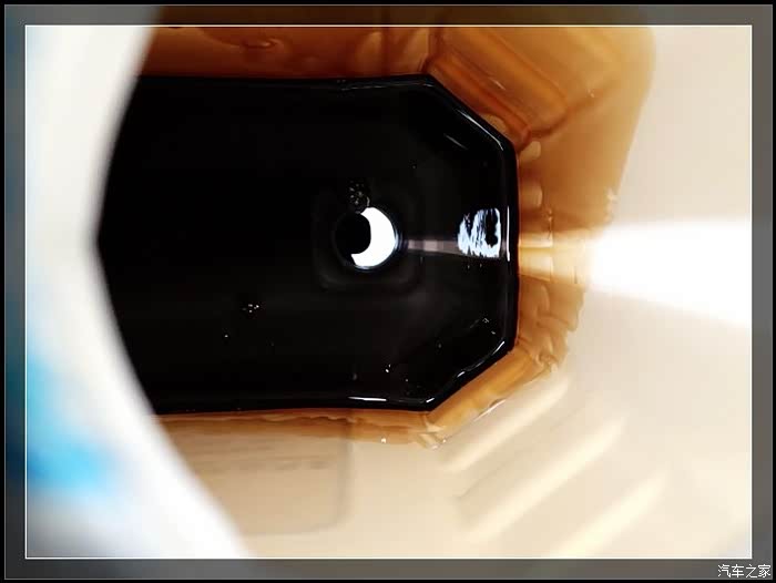 看一看抽出的废油,如墨汁状,看来机油清洗剂的效果非常明显,清理下了的油泥等。