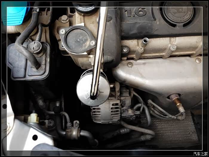 打开发动机舱盖,冬季天气干燥,非常脏啊。