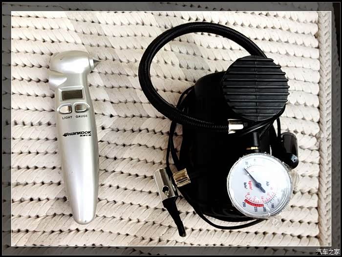 下面进行轮胎的胎压检测,这是使用的工具(都是赠品)