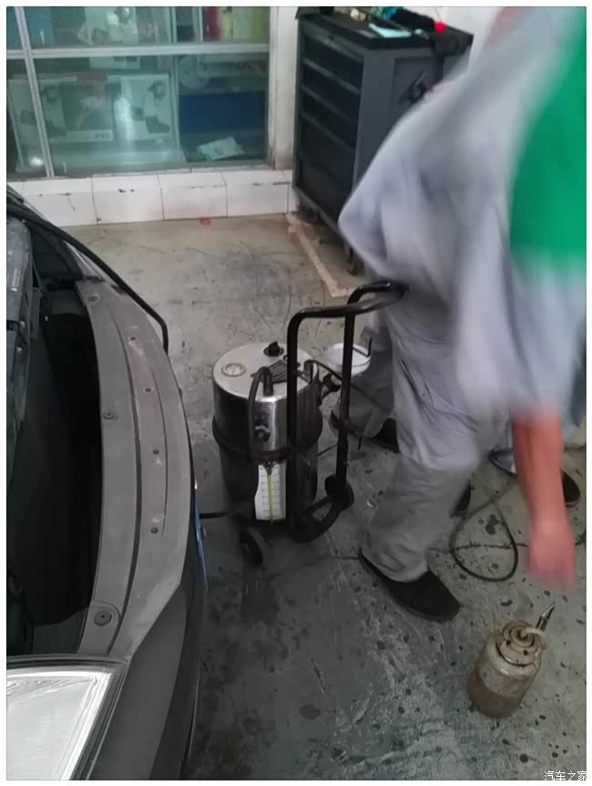 将新的刹车油倒入自助换油机,四个轮子按个放完原车的油液后就完成了刹车油的更换