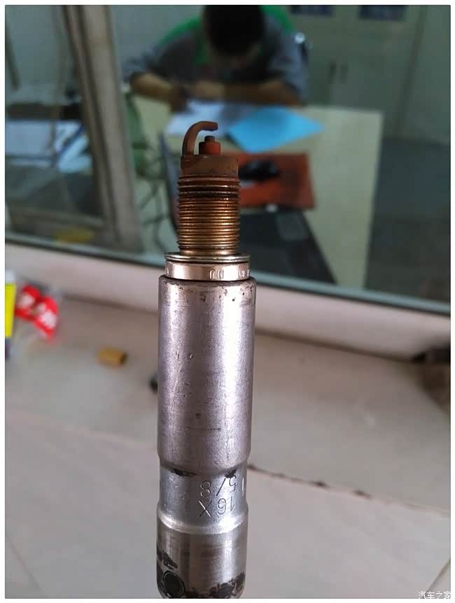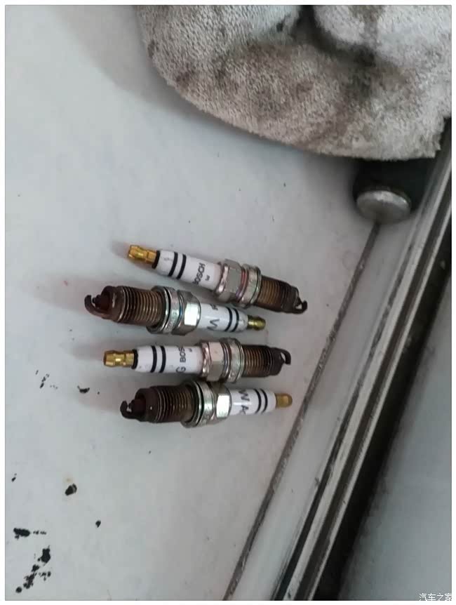 换完刹车油,接下来更换火花塞,先来一张拆下来的火花塞,烧的还可以哈!