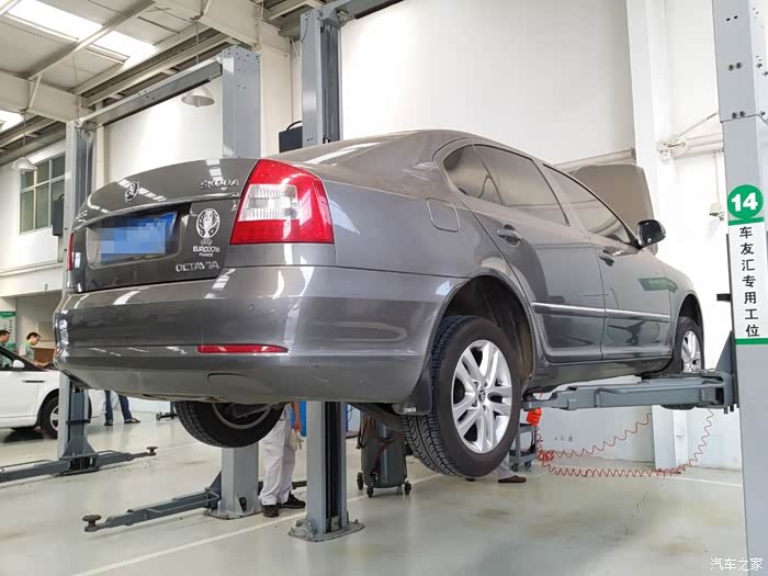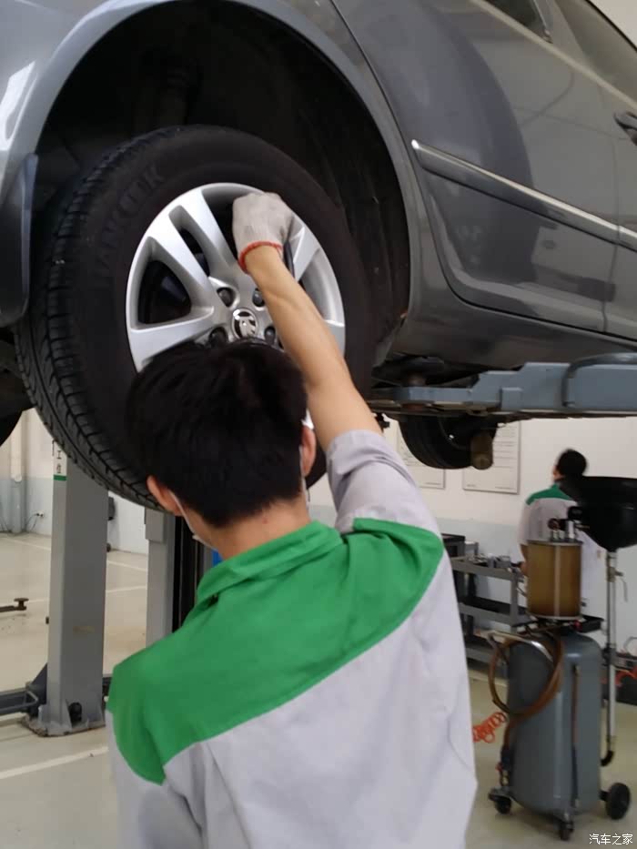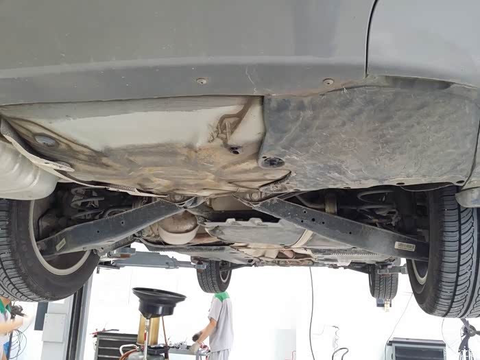 首先升降机检查下底盘,由于手动挡我一定要看下半轴漏油的情况。