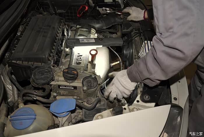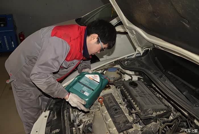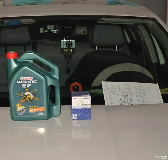 看到车间里的车子上面多了个嘉实多磁护半合成机油和马勒牌的机油滤芯。