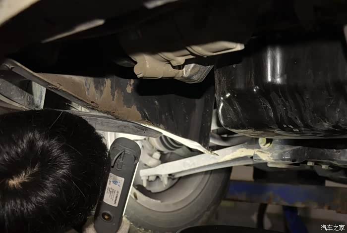 在检查半轴的时候,技工小哥发现我的小明油底壳连接处有渗油的迹象。
