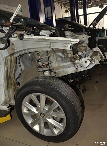 由于发动机下沉,如此剧烈的撞击驾驶室竟然没有怎么变形,技师师傅提到的这一点很关键,希望能够给大家提供参考。