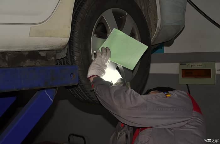 技工小哥正在检查刹车盘