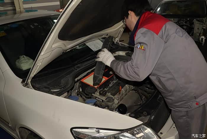 换完机油后,技工小哥查看了空气滤芯,说不脏,吹吹就好了。吹好后又帮我装上了,良心呀!