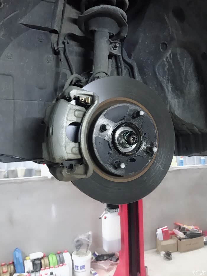 前刹车皮保养拆下来清一下弄点牛油润滑销各方面都检查包括半轴啥的检查是否漏油现在还在保修期间不需要担心可以质保