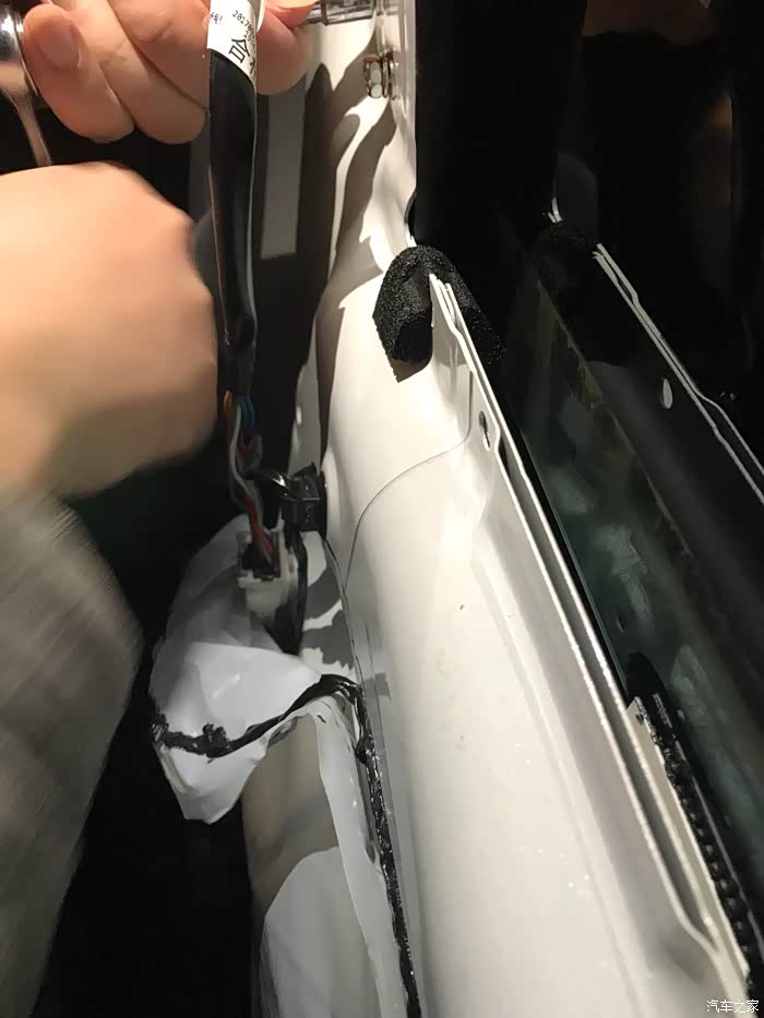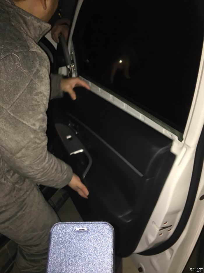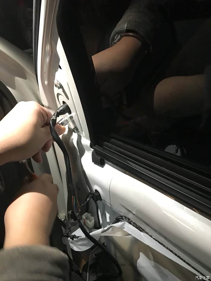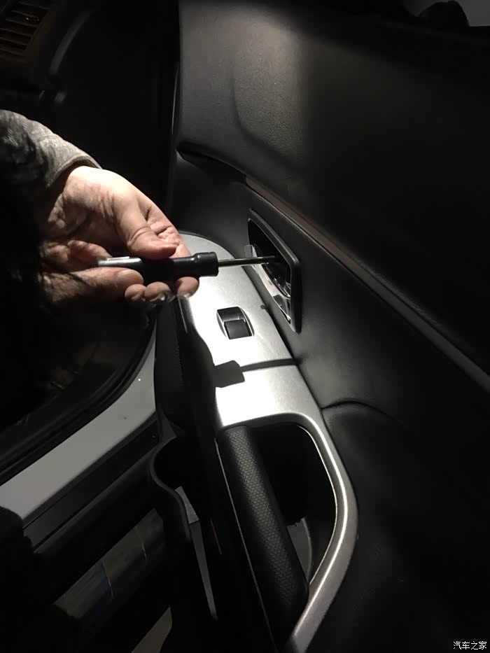 难的又来了,装门板…试了几次都有点困难,卡子对不上啊……水切也取下来了,为啥还是装不上去呢?最后还是老婆大人提醒我,要不把玻璃降下来试试?一语惊醒梦中人,原来是这样,好吧,玻璃降下来后分分钟就搞定了