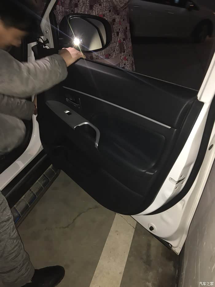 ,后来才发现前下方有个口,貌似可以从那里下手,那就试试,请原谅我的胆大,既然决定了自己换,那就一条道走到黑!此处感谢老爹全程给我打灯,老婆给我拍照,虽然他们一直紧张兮兮的怕我把车撬坏了……