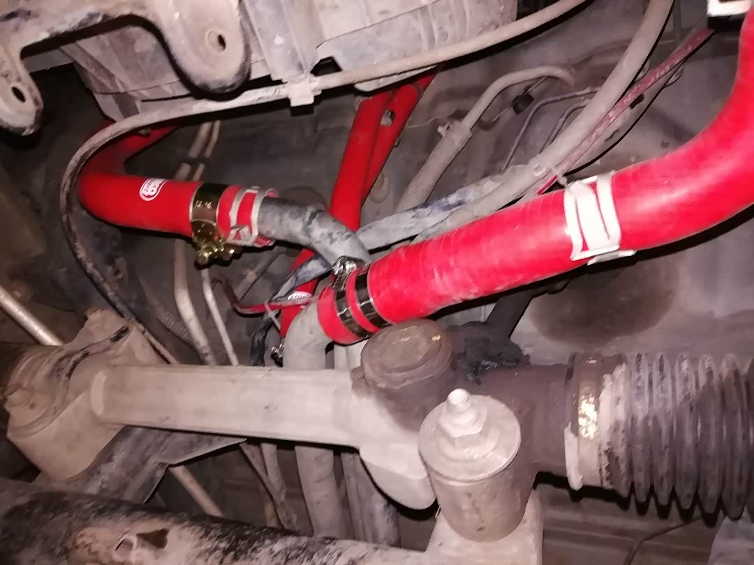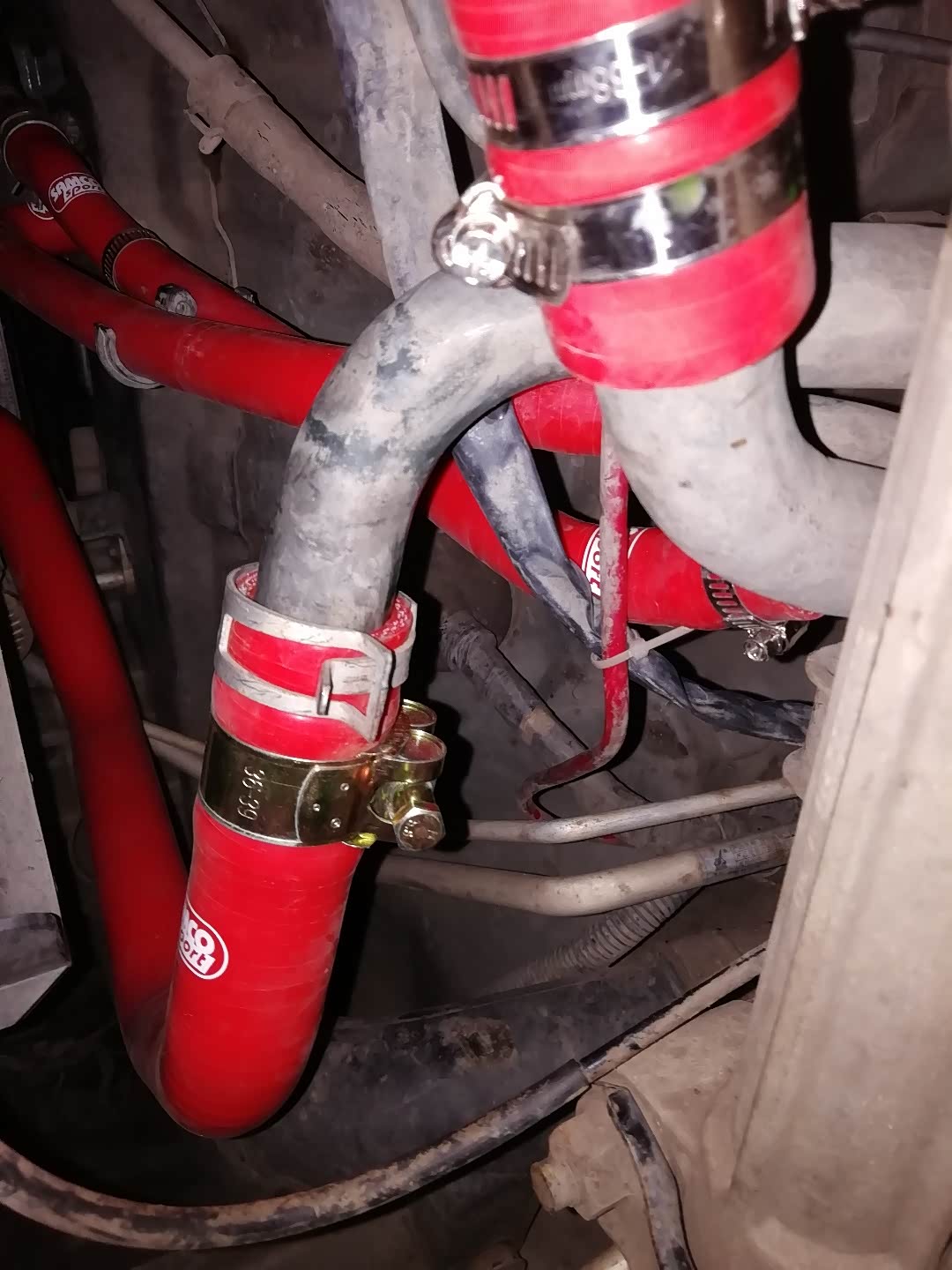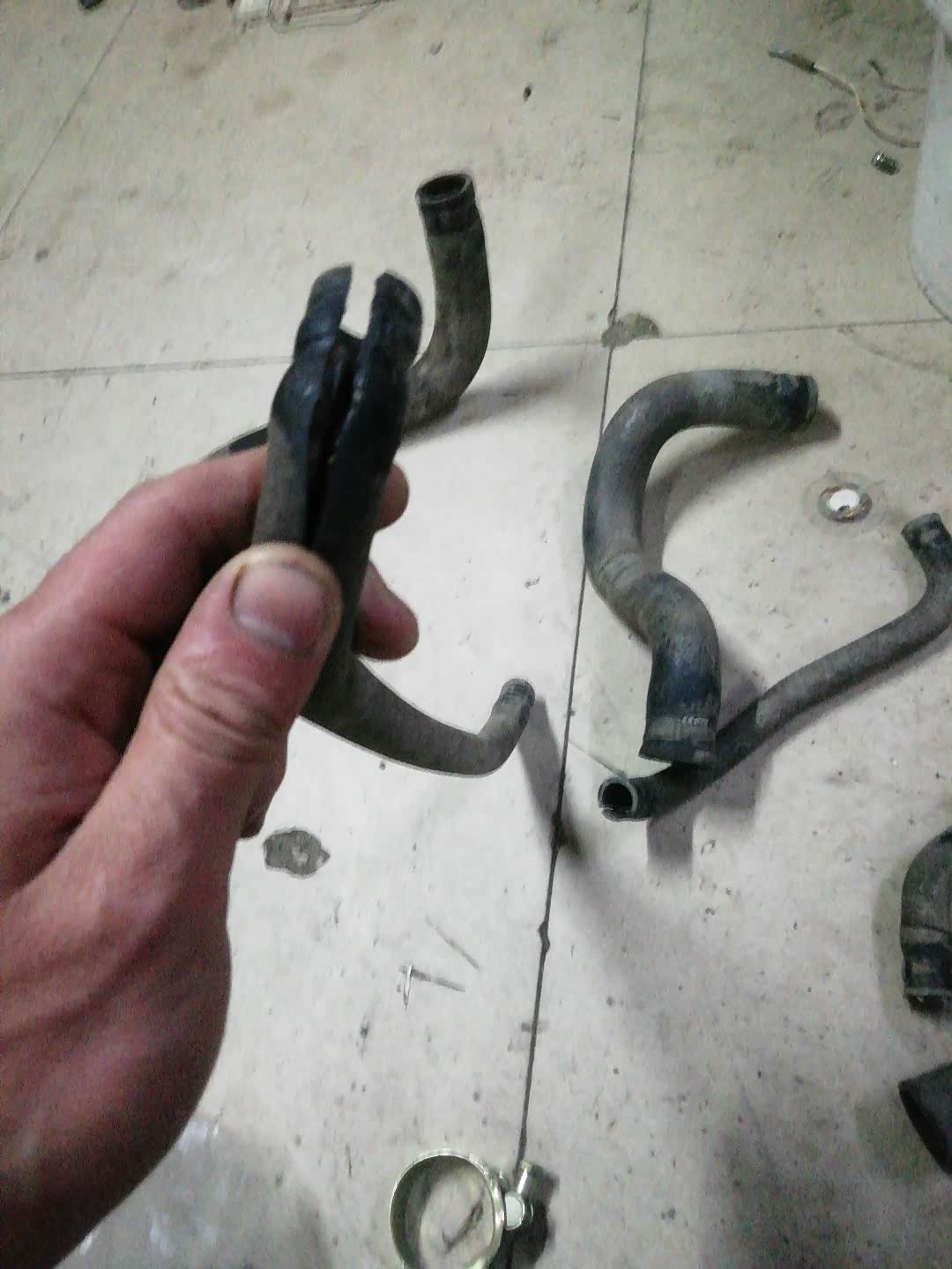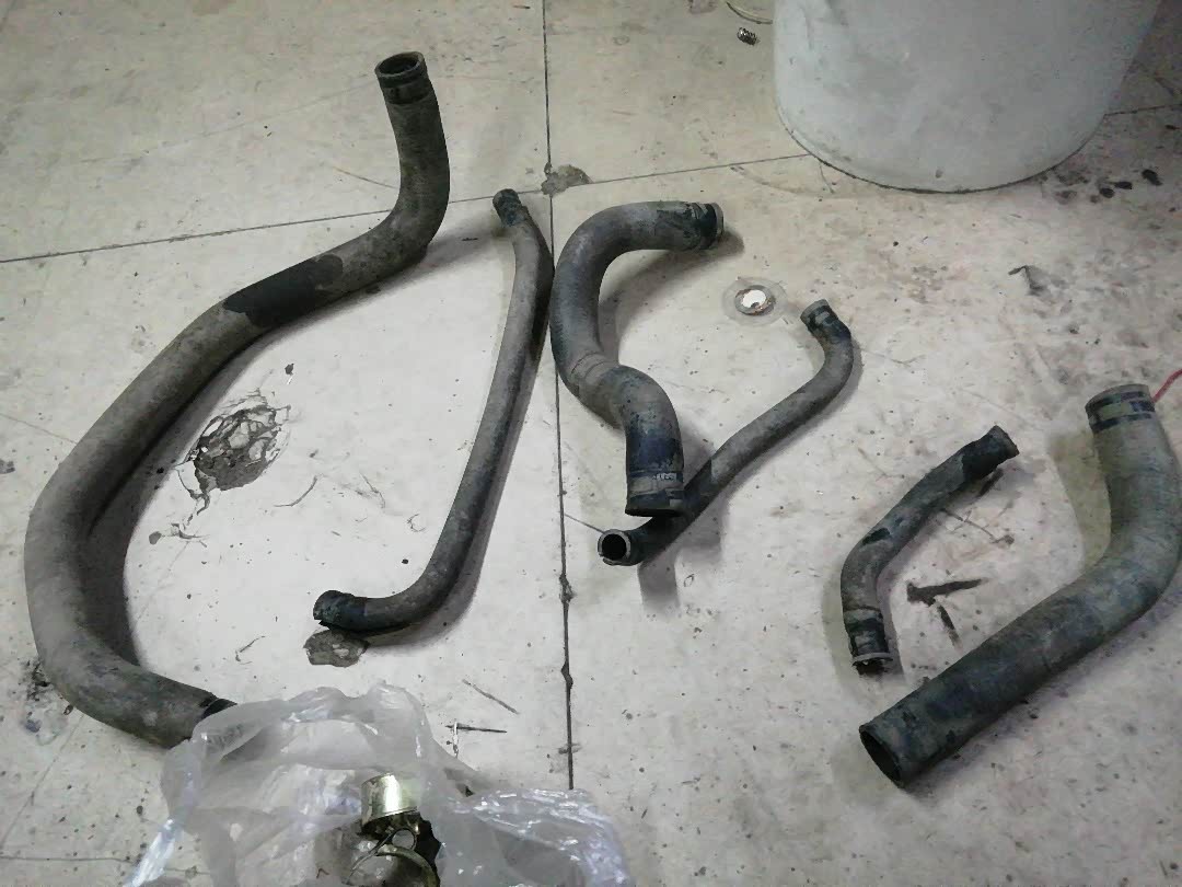 挨着的两个是暖风水管,粗的是水箱管,以为原厂的还能用上,管粗套不上了,建议大家全买螺丝上的吧,保险可靠,还省事,虽然贵点但它是最好用的
