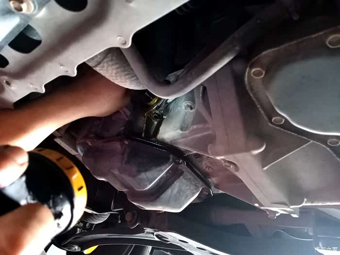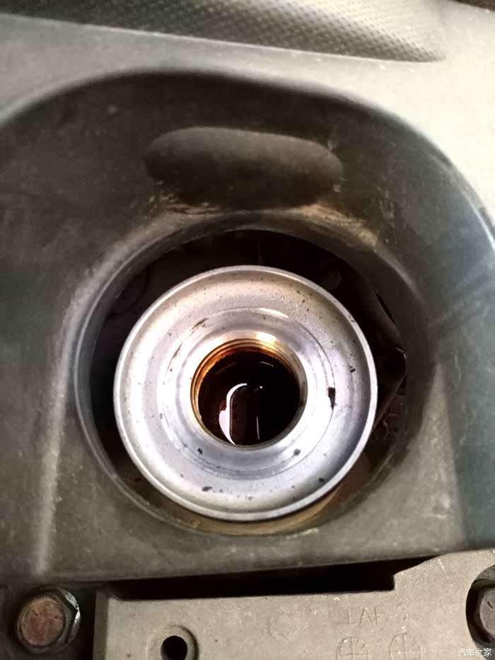 这时候机油已经放的差不多啦。为了更干净的放出旧机油,又等了十几分钟,才把底下的螺丝拧紧了